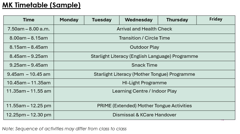 MOE Kindergarten (MK) Programme & Operating hours